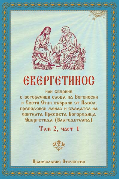 Евергетинос е сборник слова, състоящ се от 4 тома, всеки по 50 глави. Всяка глава е посветена на основна духовна тема, а отговорите са във вид на кратки разкази и изречения от живота на древните преподобни отци и майки